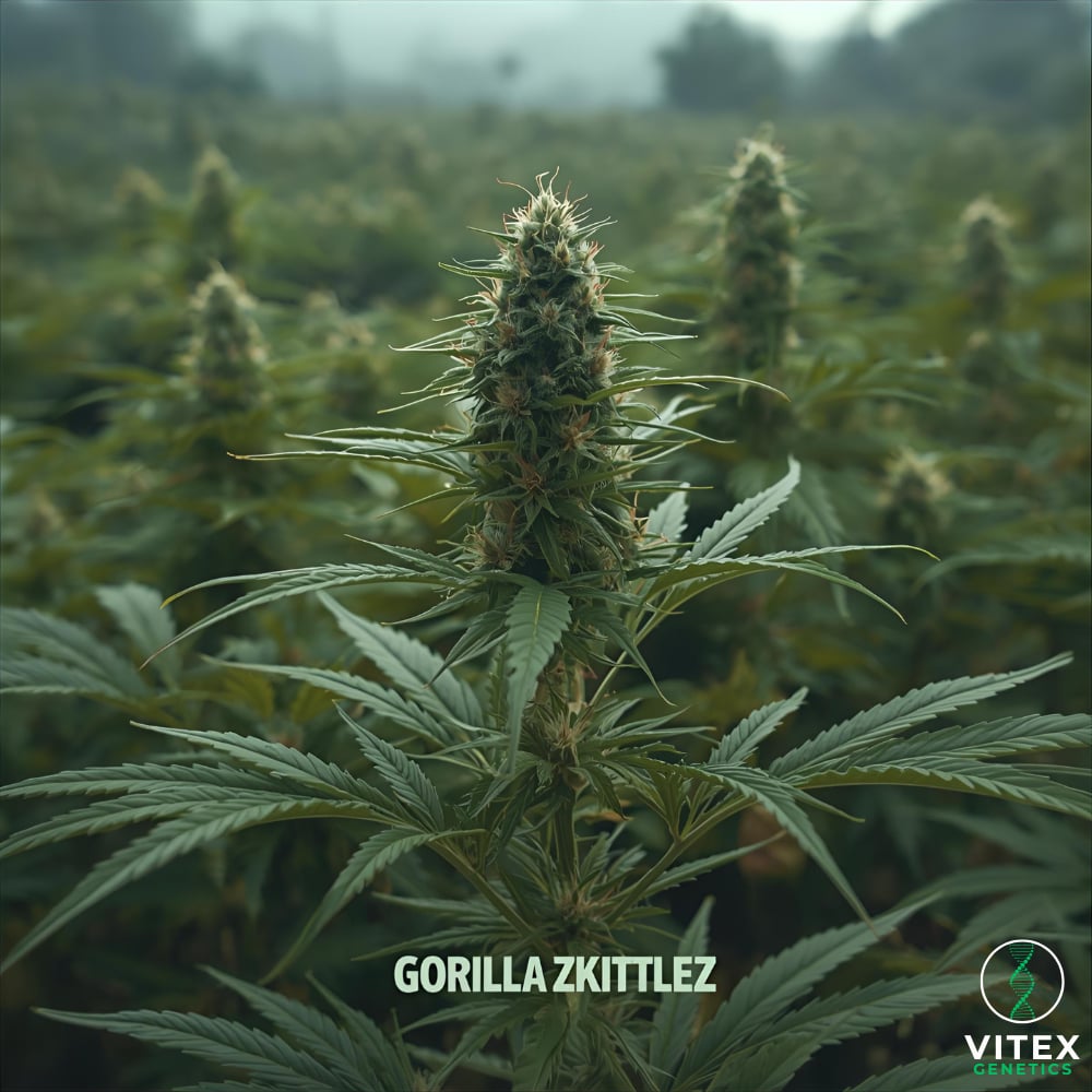 Gorilla Zkittlez Auto S1 is a slightly indica dominant hybrid strain (70% indica/30% sativa) created through crossing the potent Original Glue X Zkittlez strains with a prized auto flower. If you love a great hybrid with a slight indica lean and a great flavor, Gorilla Zkittlez Auto S1 is totally made for you.